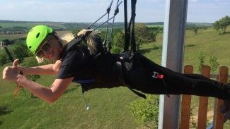 Kandász Andi macskanőnek áll Európa második megazipline pályáján Kislődön, ahol Szuperjóska az úr.